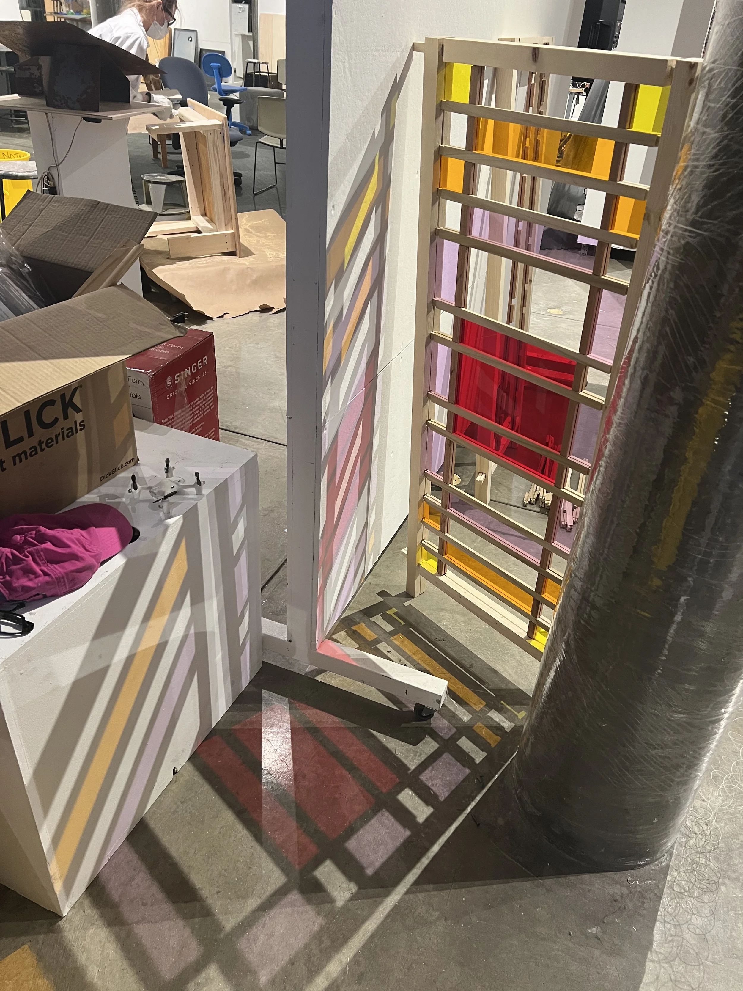 While working on this project, I questioned what it meant to takeaway the practical use of a partition by having it transparent and see through with a pattern that reference fabric or cloth—another material of partitions. Also, how does this sculpture interact with light through its meaning and physicality?